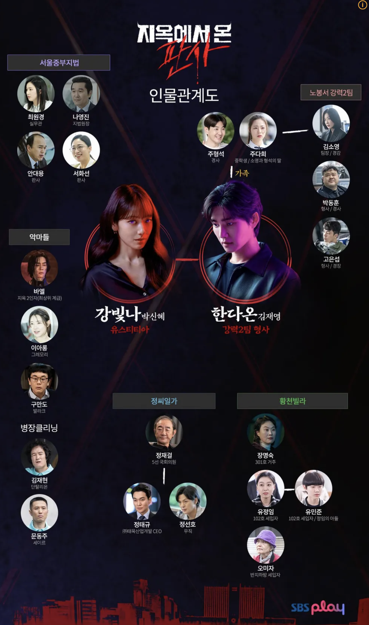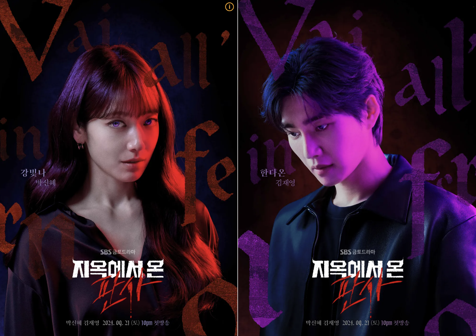 지옥에서 온 판사는 SBS 에서 2024년 9월 21일부터 방송된 드라마입니다. 11월 2일까지 방영될 예정이며, 박신혜, 김재영이 주인공 역을 맡았습니다. 판사의 몸에 악마가 들어가서 죄인들을 처단해가며 진정한 판사로 거듭나는 판타지인데요. 이런 설정 덕분에, 드라마를 보는 많은 시청자들에게 '진짜 사이다같다'는 평을 받고 있습니다. 오늘은 지옥에서 온 판사 드라마의 기본 정보, 웹툰 원작, 출연진, 등장인물과 인물관계도, 재방송과 시청률 정보를 알려드리겠습니다.